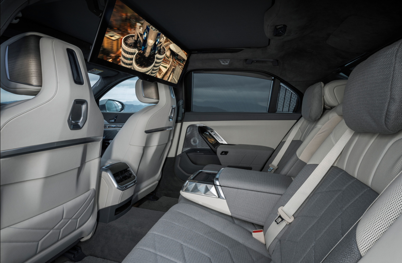 또한 클러스터와 14.9인치의 센터패시아의 인포메이션 디스플레이는 iDrive8, 국내 내비게이션, 제스처 컨트롤, 터치 스크린, 크리스털 조그 다이얼(크리스탈은 조그 다이얼뿐만 아니라 시트조절버튼, 메뉴선택 다이얼 등)이 적용되었습니다. 또한 바워스&윌킨스 655W 18 스피커를 탑재하였습니다. 또한 메리노 가죽과 블랙 하이그로시 소재로 고급감을 극대화하였습니다.